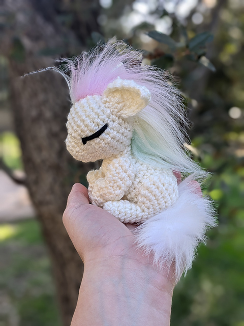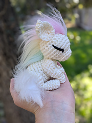 This pattern is written in US terms, available in English only. This pattern can be adapted into a larger pony, and is written to create a small acrylic yarn pony.