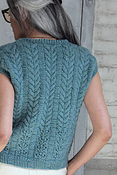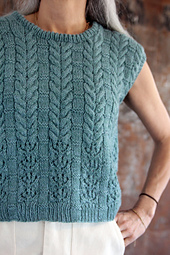 With that in mind, Caol Ila (pronounced kull eel-ah) features a lace horseshoe and uses it as a foundation for simple texture and cables, creating a vest that's all about transitions. The pattern plays into the ribbing at the hem, shifts to scoops of lace, and then morphs into a graphic cable and texture combination for the upper body. I love how the thought required at bottom eases into rhythmic cabling once you need to worry about shaping and fit.