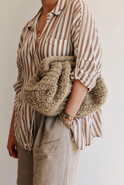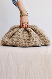If you’re looking for something high fashion and quick to make, this bag is calling your name! With three sizes included, the Sherpa Dumpling Clutch will elevate any ensemble in an instant. Crocheted with boucle yarn around a metal frame, the combination of slouch and structure is pure perfection. Available in three sizes. A full video tutorial can be found linked in the pattern.