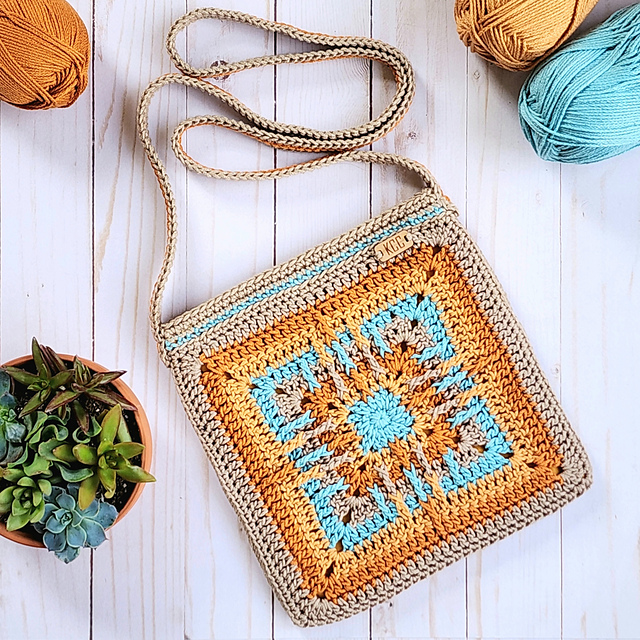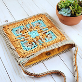 The Tucson Crossbody Bag shows off a colorful, southwestern style! It’s crocheted with size 4, mercerized cotton yarn and features a large granny square design on the front and back. The bag has a crossbody strap and instructions are included for lining the bag (some sewing experience required). This is an intermediate level project.
