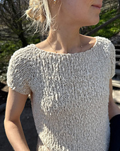 The white Wave Tee is knitted in CottonWaves by Gepard Garn in the color Raw white \[102\].