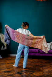 -Hue Loco DK, DK weight (#3), 75% superwash merino wool, 25% nylon [49 yards / 20 gram mini skein]. Sample uses approximately 1170 yards (24 mini skeins); the sample is created with the 2024 Botanical Fade Advent. *[Get the latest fade advent from Hue Loco][1]*!