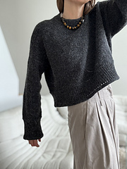 The dark grey sweater is worked in Pura Lana - col. 580.