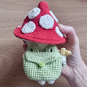 Amigurumi mushroom frog pattern PDF toy. Easy crochet download forest spirit doll. Beginner friendly plushie tutorial in low sew. For gifts