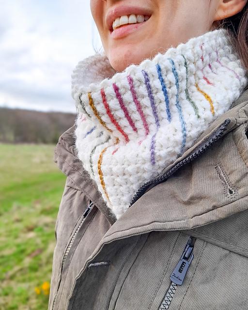 You can also work both sides of the cowl or just the one, making it a reversible design. And best of all, there’s no need to weave in all those ends because they’ll be hidden inside! You can simply knot to secure.