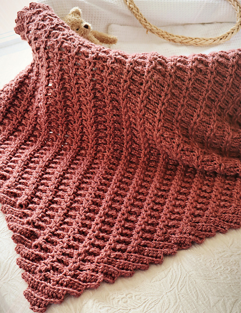 Fun to stitch & works up quickly! The C2C Simple Cable Blanket has a beautiful, reversible cable texture (same on both sides). The slanted, ribbed edging is worked automatically on each row.