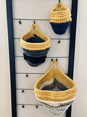 The pattern includes instructions for three different sizes, making it convenient to use for just about any need. Whether worked in solid, variegated, striped, or scrap yarn, these baskets are sure to stand out and suit any aesthetic.