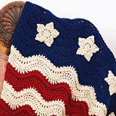 Front post double crochet stitches accentuate a simple chevron pattern that creates the illusion of a waving flag. Star motifs are sewn on at the end to add an Americana flair.