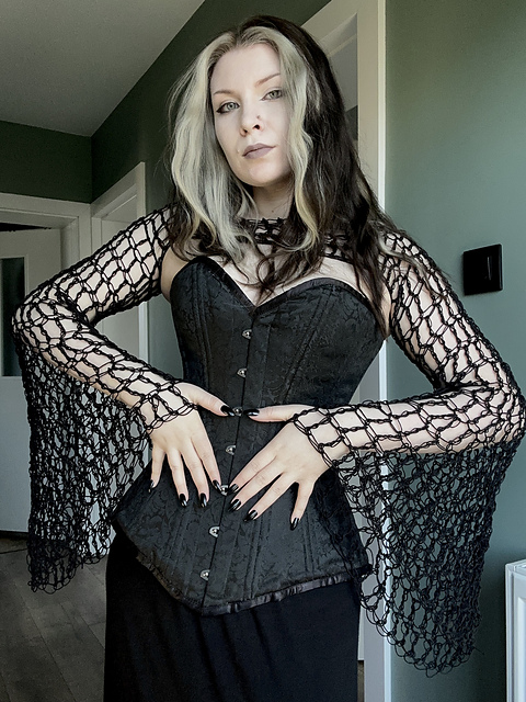 The Misty Shrug is a statement piece that belongs in every wardrobe. Its dramatic flared sleeves add elegance and edge to any outfit, perfect for layering over dresses, corsets, or even casual looks. Light, airy, and full of character, it turns simple styling into something unforgettable.