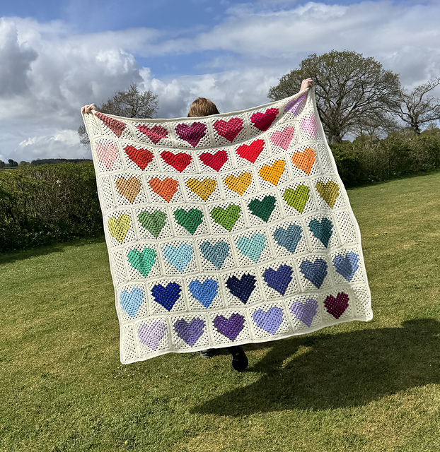 *The pattern is provided in 2 versions, so you can choose between UK and US crochet terms. There are stitch diagrams and schematics to help you understand the placing of the hearts.*