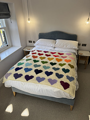 To make the large blanket I have used a combination of Stylecraft Special DK yarn. The large blanket uses 45 colours for the hearts and cream for the unifying background. The large blanket also has an oblong pattern to help the rows of hearts to be off-set. There is also a design for making a smaller lap/cot blanket. For this design I used Yarnsmiths Merino DK Superwash.