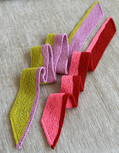 *The red/pink sample shown is the short size. The green/pink and pink/gray samples shown are the long size.*