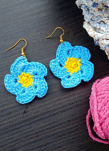 **"Pinwheel Flower Earrings" is a crochet pattern to make earrings or an applique. The pattern is inspired by the pinwheel flower and is super quick to make.**