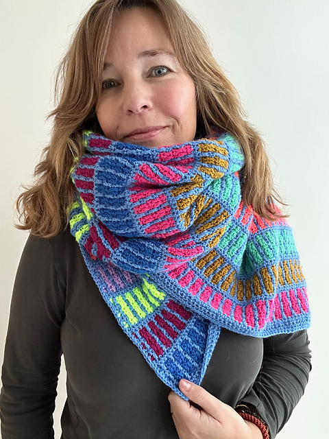 The Forelsket wrap is an extra large mosaic crochet scarf you can wrap around yourself on cold winter days or chilly summer evenings.