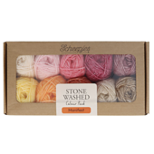 Samples are made with one Scheepjes Stonewashed Color Pack, and gauge is important as the design uses up most of the yarn included in the pack.