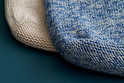 - 3 (5) skeins of Purl Soho’s [Sunshower Cotton][1], 100% organically grown cotton. Each skein of this worsted/aran-weight yarn is 159 yards/ 100 grams; approximately 475 (710) total yards required. We used the colors Heirloom White and Upper Atmosphere.