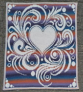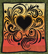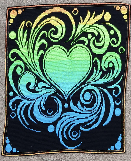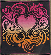 Dit patroon met een sierlijk hart is gemaakt om te haken in overlay mozaïek techniek.