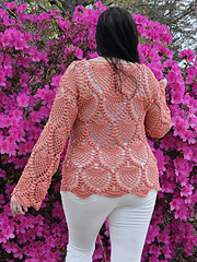 Pattern includes photo tutorials to help you ease right through this fun design! The lace details are so light & airy that gives you a feminine look that is the perfect Statement Piece! This pattern is a Modern version of the Pineapple Stitch mixed with Puff stitches to create a beautifully textured lace piece. Plus this sweater has matching sleeves that give you a Boho chic vibe!