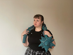 The Plush Chain Mace is made of many small pieces stitched together. The chain links are worked individually and make it easy to customize the size of your flail!