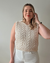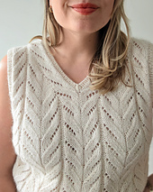 The Ebba vest is knitted seamlessly top-down with a lace pattern that looks like cables. The lace pattern follows the neck shaping on the front, then joining at the bottom of the v-neck. The increases in the lace pattern are fully charted.