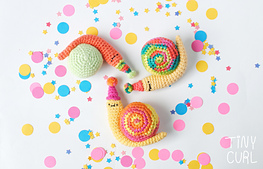 Find the full free pattern on the Tiny Curl website: https://www.tinycurl.co/party-snail-amigurumi-free-crochet-pattern/