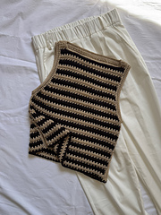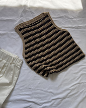 Il Basic Top a righe marrone e beige è lavorato con il filato Estate di Silke. Ho usato 2 gomitoli del colore marrone e 2 gomitoli del colore beige.