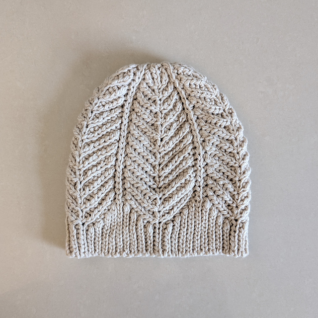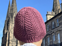 Fog Forest is a crochet hat with a fern-like stitch pattern. The hat is worked sideways making one tree at a time using plenty of short rows, finishing with seaming the side.