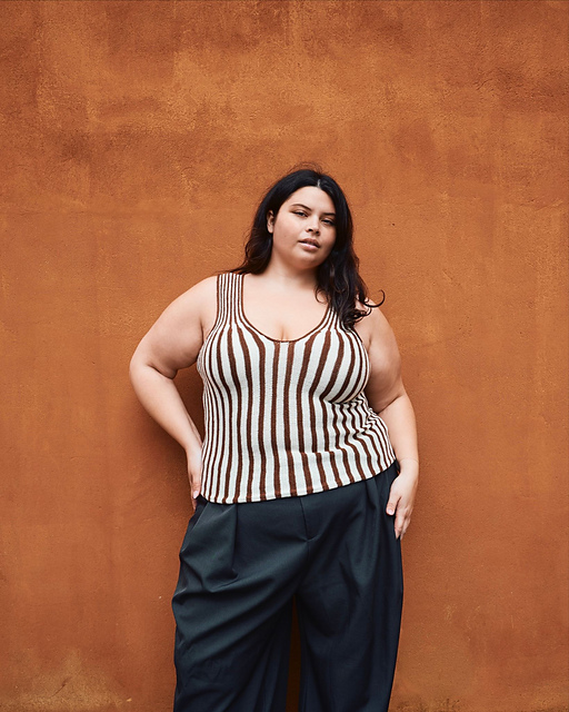Line Top is worked in a striped pattern with two alternating colors. The stripes in one of the colors are worked over more rows throughout than the other, making it the dominate color (MC). How you choose your colors can dramatically alter the look of the top – you can go for high contrast with two very different colors or for low contrast with two colors that are fairly similar to achieve a more subtle look.