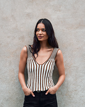 Line Top is worked sideways as one continuous piece, back and forth. You start with a provisional cast-on and continue with the right armhole, front, left armhole and lastly the back. Armholes, straps and neckline are shaped with a combination of increases and decreases as well as by casting on new stitches, binding off stitches and German short rows. The body is grafted in one side using Kitchener stitch for an invisible join.