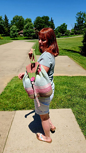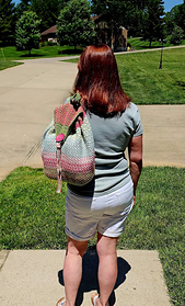 The Cincinnati Backpack is the perfect accessory for carrying all of your necessities. Made specifically with my active 10 year old granddaughter in mind for carrying roller skates to the rink or art supplies and drawing pads while on a nature walk, the finished backpack is strong and durable. The use of a smaller hook size helps to create a nice dense fabric that is less likely to have items poking out through the stitching. With plenty of time between now and the start of school in the fall, this would make a wonderful school accessory as well.