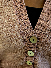**Materials**: Rockies DK (Yarn A 247yds), Boucle DK (Yarn B 240yds) Hooks: 3.75mm & 4.5mm Buttons: 4-6