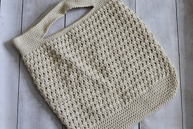 The Southport Market Bag crochet pattern is a fairly easy one to work. The bag consists of rounds of half double crochet two together stitches and rounds of paired double crochet stitches.