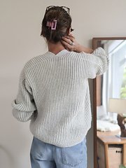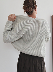 *For the super cozy COOMO cardigan my goal was a newer interpretation of the super classic cardigans in fishermen's rib. It still has the classic look, but the V-back construction with the crossed back neck (like I've used in the [GARDEN cardigan][1] before) give some appealing extra to it and I wanted this cardi stays effortlessly in place on the shoulders*