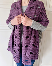 CIRCLES OF SOLACE WRAP SHAWL - an EASY pattern: Let the light in - and the worries out. The Circles of Solace Wrap Shawl by Knot Yourself Out is a gentle, openwork design that surrounds you in comfort and calm. With bold circular details and a soothing stitch pattern, this piece is EASY to make and beautiful to wear. A wrap for peaceful moments, meaningful gifts, and quiet grace.