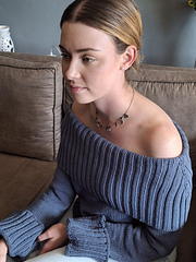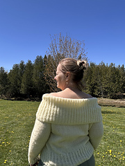Say hello to the Elan Sweater—an off-shoulder design that’s equal parts simple and sophisticated, making it a timeless addition to your wardrobe. With its fold-over collar and flared sleeves, it might sound tricky to make, but don’t worry—it’s beginner-friendly and uses only basic knitting techniques.