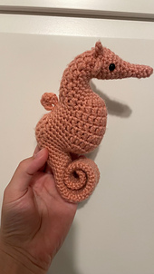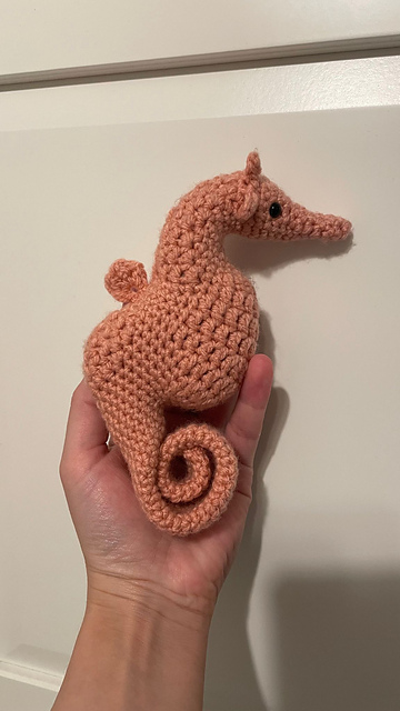 • a pair of safety-eyes. Alternatively, the eyes could be embroidered onto the seahorse, for example using a French Knot technique, with any yarn or embroidery floss of any chosen color.