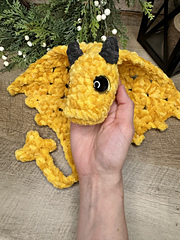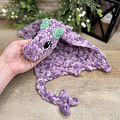 Bulky Snuggle Dragon: size 5/6 bulky/blanket yarn in 1-2 colors, N/10mm & L/8mm hooks, 25mm sinker/trapezoid safety eyes