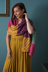 * The sample wrap used approximately 1263 m / 1382 yds in total: Color A: 257 m / 281 yds, Color B: 253 m / 277 yds, Color C: 257 m / 281 yds, Color D: 240 m / 262 yds, Color E: 257 m / 281 yds. Your yarn amounts may vary depending upon how many colors you use and which pattern options you select.