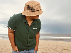 The hat is worked top-down. Starting with the base of the hat at the top, continued with the side, and the rim, the hat is worked as one piece.