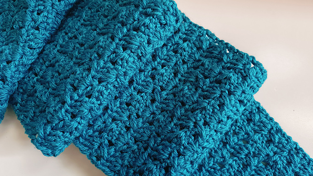 This is an easy 2 row repeat pattern consisting only of basic crochet stitches. This scarf is suitable for both men and women. Both length and width of the scarf can be adjusted.