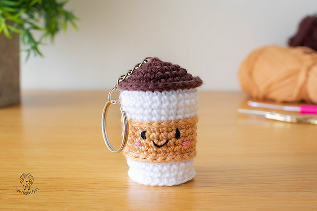 This adorable coffee cup keyring is part of my Crochet Keychain Collection. It’s a quick and fun project with no sewing required.