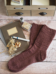 The Letterpress Socks celebrate this shared heritage of meaningful making. Knit from the top down, they begin with a classic ribbed cuff before transitioning into a simple but effective stitch pattern that plays with raised purl bumps and defined ridges. These textured rows circle the leg like lines of text impressed into paper. The stitches are easy, but varied enough to keep your interest. A traditional heel flap and gusset construction and a wedge toe finish off the sock, though if you’d like to substitute your preferred techniques for a more personalised fit, it’s easily done.