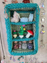 A quick and beginner-friendly pattern for a tiny wall shelf. Great for showing off crystals, tiny potions, or any little collections.