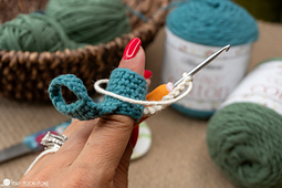 Does your finger get sore from crocheting too long? Make a finger cuff that doubles as a yarn guide!