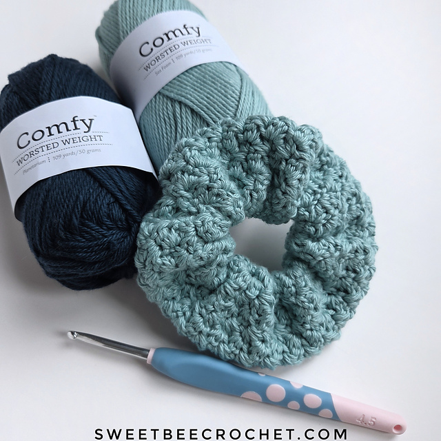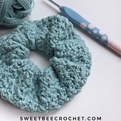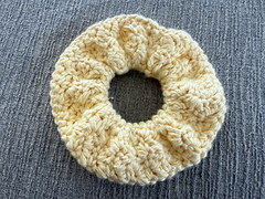 Crochet a cute scrunchie using the suzette stitch. This scrunchie works well on its own for pony tails or as an accent around a bun hairstyle style for a pop of colour. Use your favourite worsted weight yarn in cotton or acrylic.