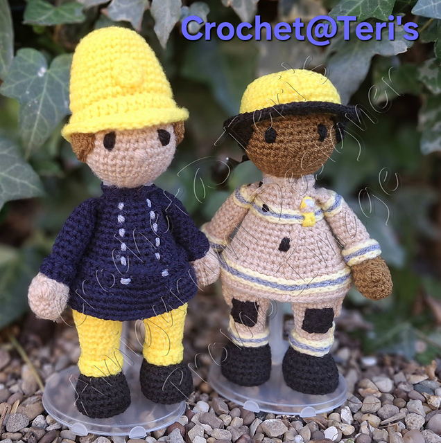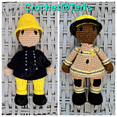 Both of the firefighters are made in the traditional **Amigurumi** style and have **fully integrated limbs**.