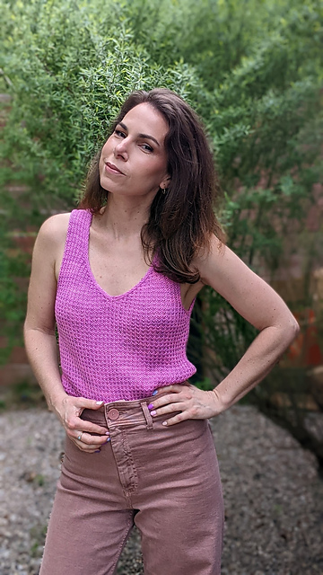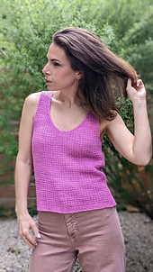 This beautiful summer tank is a dream to wear on a warm day. The lush texture adds interest and the gorgeous neckline really draws you in. This tank is knit from the top down with zero finishing.