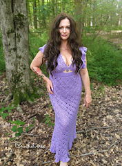 This dress is comprised of a repeating lace pattern. Counts and rows are specific line by line for all sizes. It uses a standard size crochet garment clothing method in color coding so you can easily spot which number applies to your dress. It is rated advanced intermediate and you should have some experience making clothing before trying this pattern.