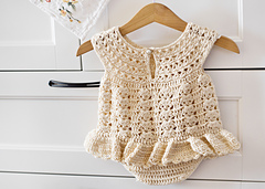 The Petunia Romper is worked from the top down and is completely seamless. It features a back and bottom opening for easy changing.