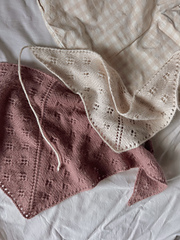 The scarf comes in 4 sizes; a bandana, a neck scarf and two shawls. The construction makes it easy to adjust the size of the scarf as you go, making the scarf a great scrap yarn project.